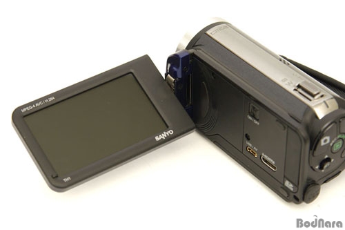 VPC-TH1은 버티컬 타입의 산요 작티 시리즈가 따로 도킹 스테이션을 제공했었던 것과 달리 길어진 몸체를 활용해 입출력 단자를 전부 본체에 배치시켰다. 전원 ON/OFF 버튼과 USB/AV, HDMI 포트, 그리고 SD/SDHC 메모리 슬롯은 LCD가 닫히는 본체 안쪽으로 배열했으며, 엄지 손가락으로 조작 가능한 촬영 버튼과 재생 모드, 메뉴 버튼과 방향키는 뒤쪽에 기존 작티 시리즈처럼 구성했다.