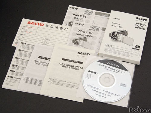산요 작티 VPC-TH1의 제품 구성물은 본체와 배터리팩 외에 사용 설명서, 빠른 설치 가이드, 안전 주의 설명서 등 각종 매뉴얼과 작티 소프트웨어 CD, 컴포지트 AV 출력 케이블, USB 연결 케이블, 렌즈 커버와 분실방지끈, 외부 전원 어댑터와 케이블 등이 제공된다.